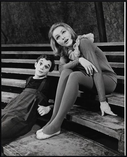[Julie Newmar and Joel Grey in the touring production of "Stop the World - I Want to Get Off".]