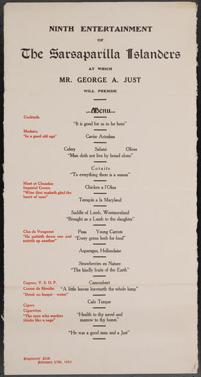 Dinner of the Twenty-ninth Street Members of the Engineers Club Commemorative of the Opening of the First Clubhouse