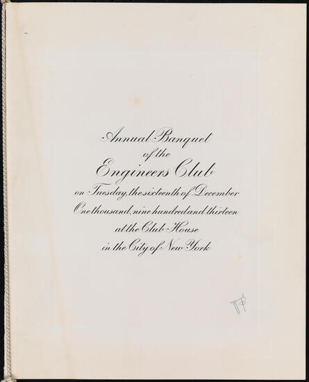 The Engineers Club Inaugural Banquet Commemorative of the Opening of the New Club House