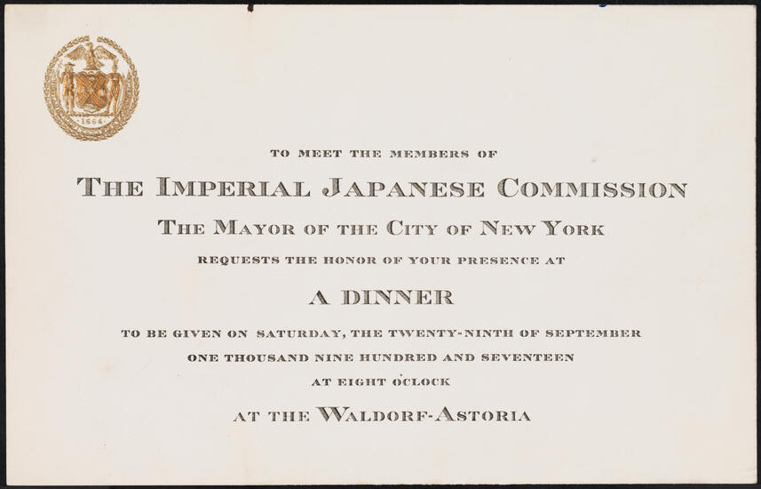 Dinner in Honor of the Imperial Japanese Commission to the United States of America
