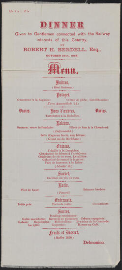 Diagram of Table with Order of Seats. [Dinner given to gentlemen connected with the railway interests of this country, by Robert H. Berdell, Esq.]