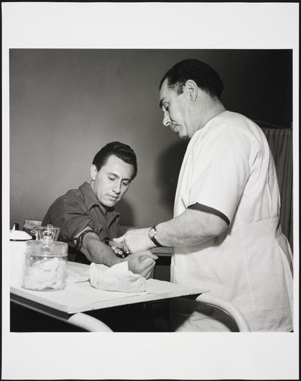 Haircut in the Great Hall, Ellis Island, 1951.