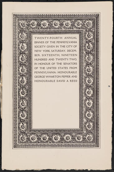The Pennsylvania Society. The Twenty-third Annual Dinner held in the City of New York