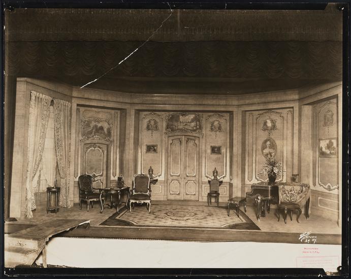 [Staging for the Act 1 set of the chateau drawing room in "The Beautiful Adventure".]