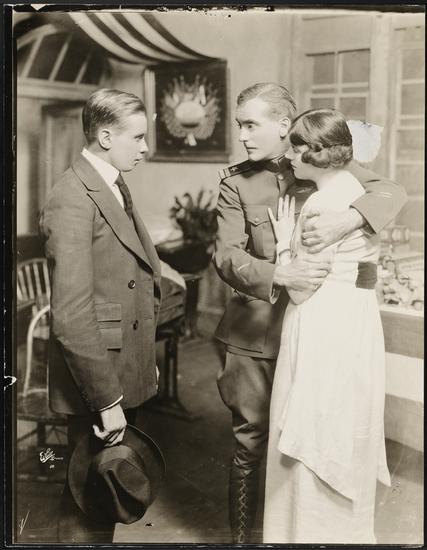 [Ralph Morgan as Douglas Adams, William E. Meehan as "Mac" and Helen Barnes as Rhy Mac Donald in "The Five Million".]