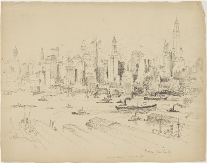 [New York Skyline and Brooklyn Bridge from Brooklyn.]
