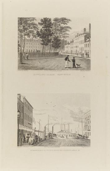 A. Junction of Broadway and the Bowery; B. Bay and Harbour of New York.