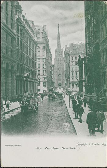 Wall Street Showing Stock Exchange, Sub - Treasury and Trinity Church, New York.