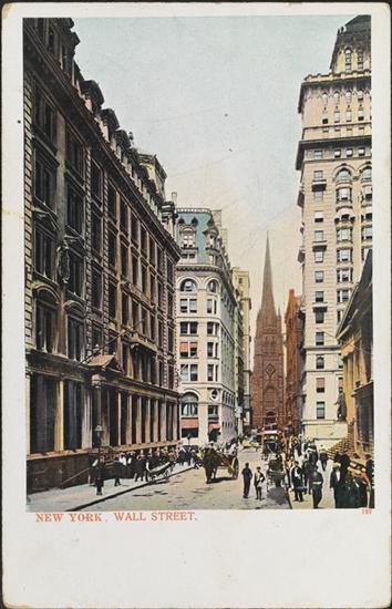 Federal Hall, Wall Street and Trinity Church, New York, 1789.