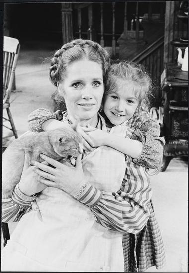 [Liv Ullmann as Mama and Tara Kennedy as Dagmar with Uncle Elizabeth the cat in "I Remember Mama".]
