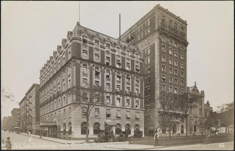 South West Corner of Broadway and 107th St., New York and Bloomingdale Reformed Church.