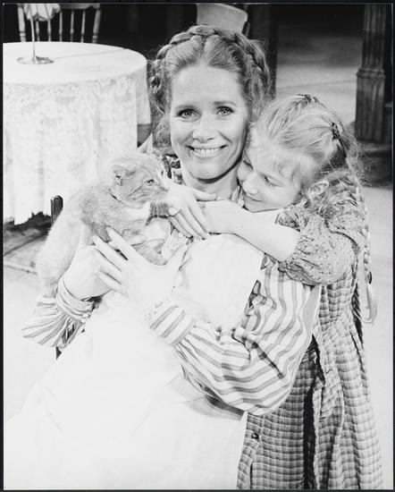[Liv Ullmann as Mama and Tara Kennedy as Dagmar with Uncle Elizabeth the cat in "I Remember Mama".]
