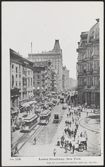 Trinity Church, Lower Broadway, and American Surety Building, New York.