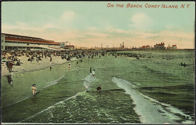 Boardwalk and Beach, Looking South, Coney Island, N. Y.