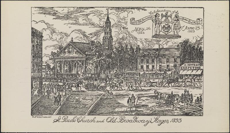 View of St. Paul's Church and the Broadway Stages, N.Y. 1831.