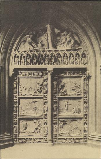 [Central bronze doors of Old Trinity Church.]