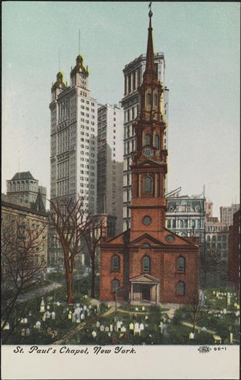 St. Paul's Church, showing Woolworth, St. Paul and Park Row Buildings. New York.