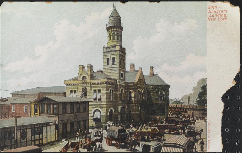 [Building, with sign reading "U.S. Shipping Commissioner" and statue of Ericsson]