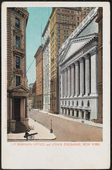 [New York Stock Exchange and the banking house of J. P. Morgan and Co.]