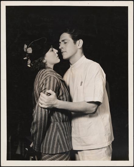 [Alexander Kirkland as Dr. Ferguson and Margaret Barker as Laura Hudson in "Men in White".]