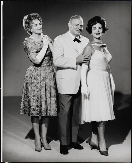 [Mimi Benzell as Ruth, Robert Weede as Phil and Molly Picon as Clara Weiss in "Milk and Honey".]