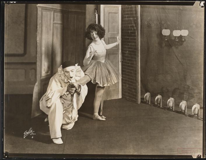 [Elsie MacKay as Marie Duplessis and Lionel Atwill as Jean-Gaspard Deburau in "Deburau".]