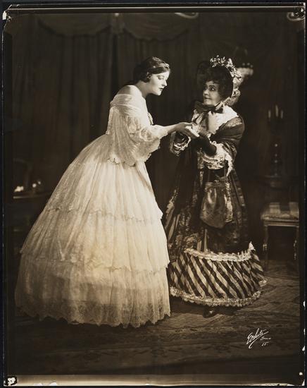 [Elsie MacKay as Marie Duplessis and Lionel Atwill as Jean-Gaspard Deburau in "Deburau".]
