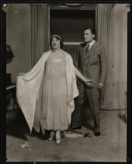 [Frances Starr as Pearl Delgado or Ruby Delgado and Theodore Babcock as Bert Mason in "One".]
