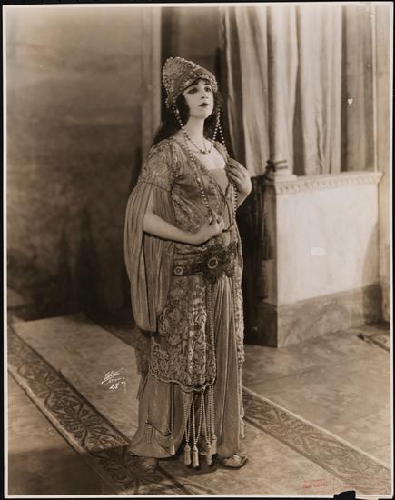[Julia Adler as Jessica and Horace Braham as Lorenzo in the balcony scene of "The Merchant of Venice".]
