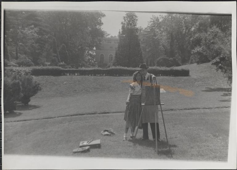 [People painting outside, paintings by Reginald Marsh, and group portrait of unidentified people.]