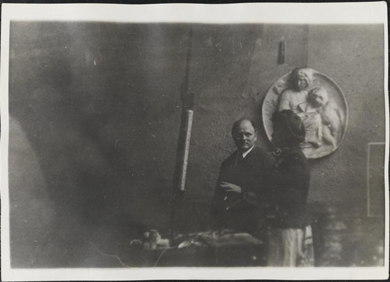 [Unidentified men, Reginald Marsh, and women painting in studio.]