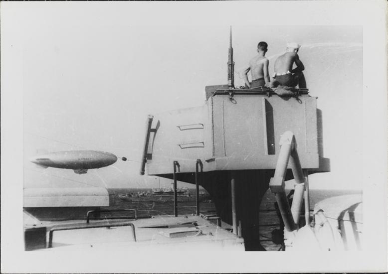 [People boarding the U.S. Coast Guard tug Calumet.]