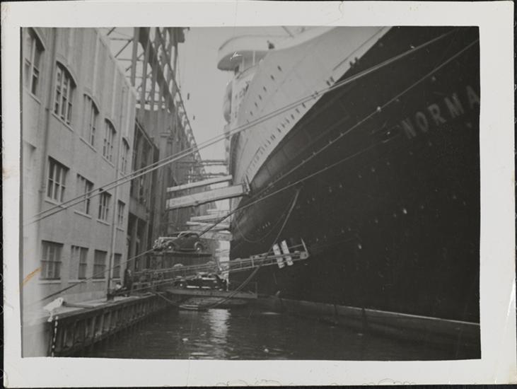 [Normandie ship docking.]
