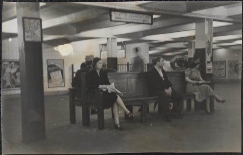 [Commuters in subway station.]