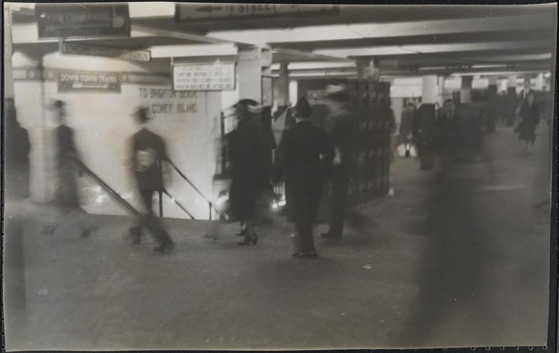 [Commuters in subway station.]
