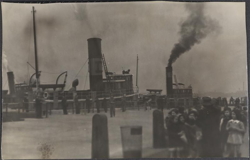 [Normandie ship docking.]