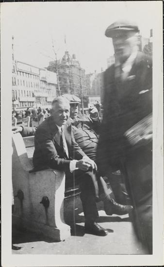 [Destitute men sleeping next to James Fountain in Union Square.]