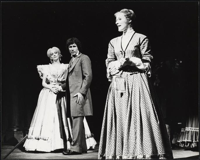 [Jim Dale as P. T. Barnum and Marianne Tatum as Jenny Lind in "Barnum".]