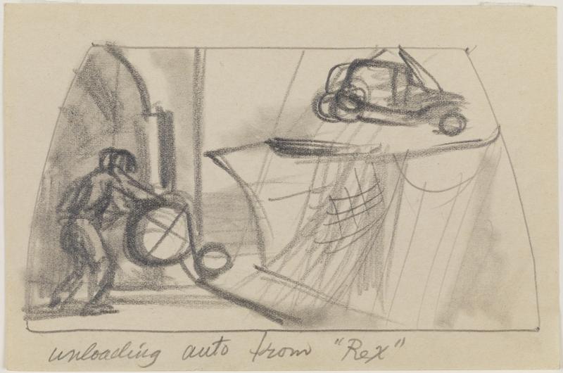 [Car being unloaded from ship.]