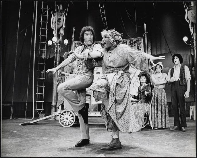 [Jim Dale as P. T. Barnum and Catherine Cox as Mrs. Barnum in "Barnum".]