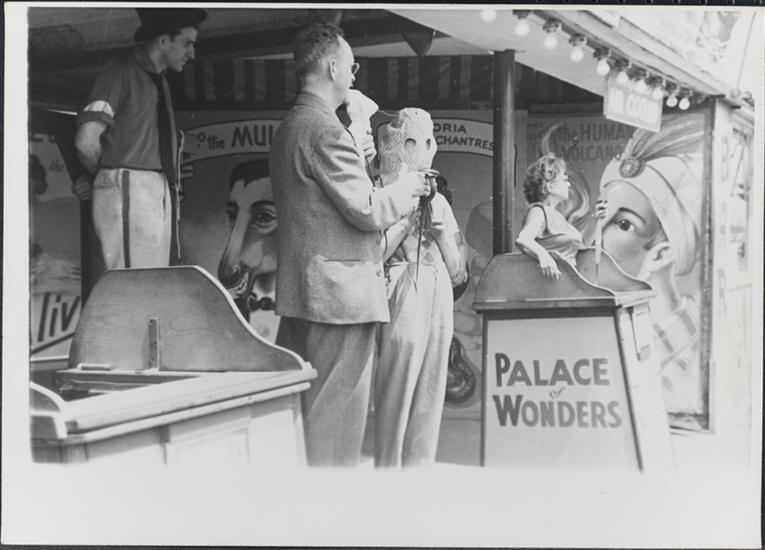 [Palace of Wonders sign featuring Milo the Mule Face Boy.]