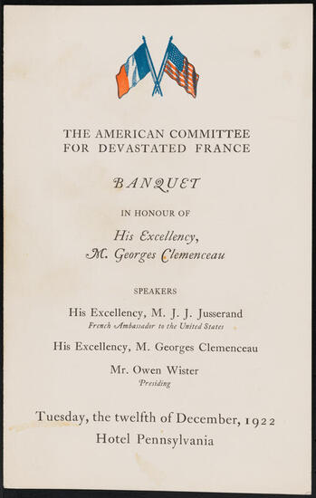 Dinner in honour of His Excellency Ferdinand Foch, Marshal of France, given by the France-America Society
