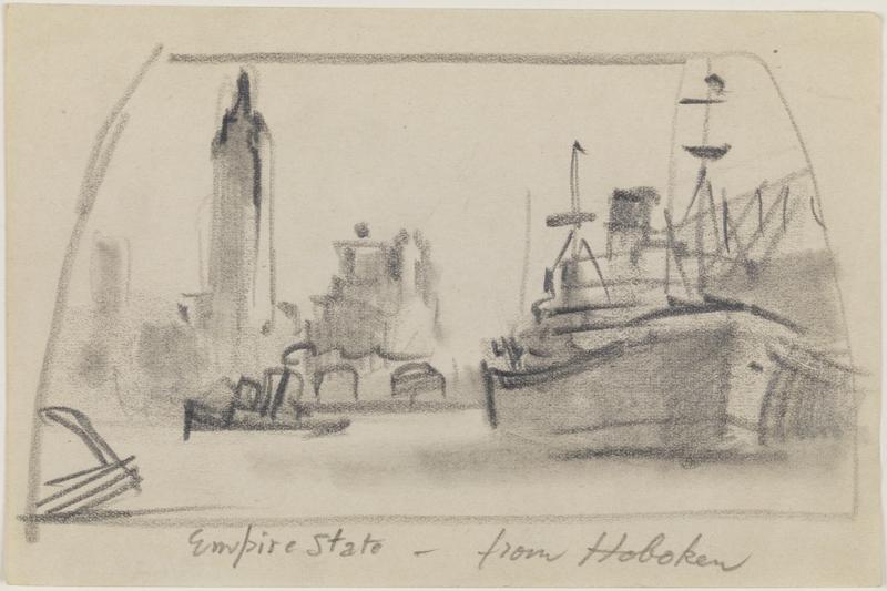 Lower N.Y. (looking north) with battle ship from "News" photo.