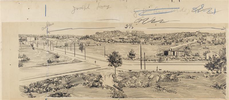 Broadway Series. View looking south from 215th Street. Willow Tree Inn at left. Isham Park at right.