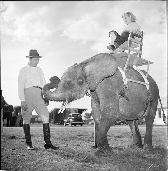 Circus [Animal trainer and elephant.]