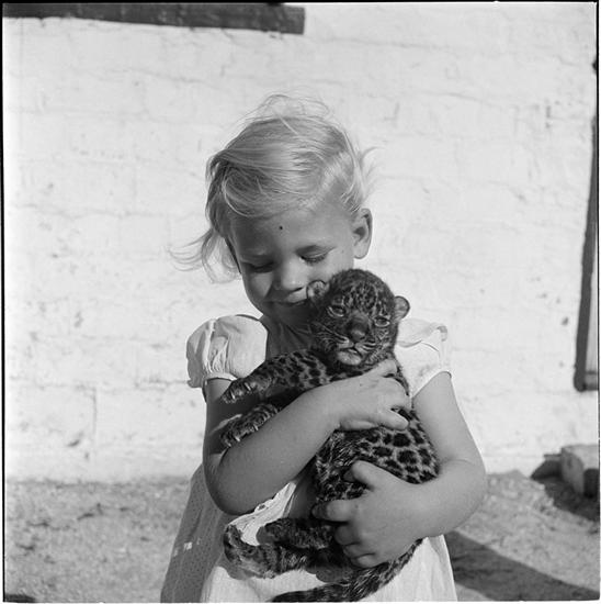 Circus [Trainer showing a cheetah cub to a group of women.]