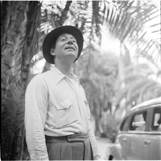 Circus [Men drinking soda outside Barnum and Bailey railroad cars.]