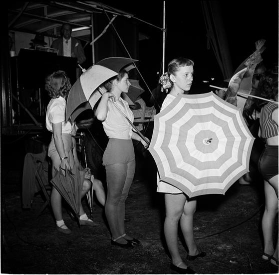 Circus [Circus performers with umbrellas.]