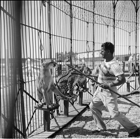 Circus [Animal trainer with a leopard.]