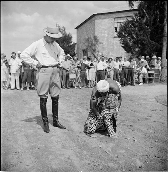 Circus [Ringmaster, with elephants and trainer in the background.]